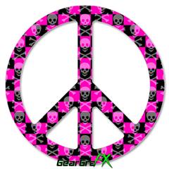 Skull and Crossbones Checkerboard - Peace Sign Car Window Decal 6 x 6 inches
