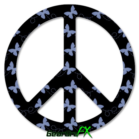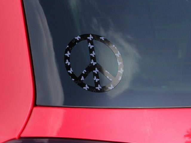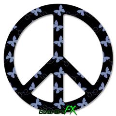 Pastel Butterflies Blue on Black - Peace Sign Car Window Decal 6 x 6 inches
