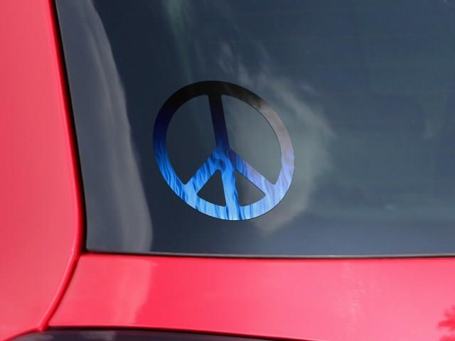 Fire Flames Blue - Peace Sign Car Window Decal 6 x 6 inches