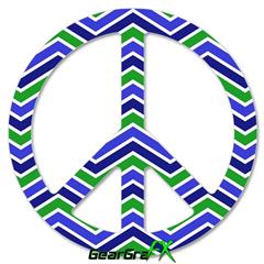 Zig Zag Blue Green - Peace Sign Car Window Decal 6 x 6 inches
