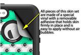 uSkins™ are self adhering vinyl decal style skins and are a great way to add a new look to your existing protective case. uSkins are a composite of two layers of commercial grade materials. The bottom layer is a soft, flexible vinyl with a special removable adhesive that is easily positioned, applied without air bubbles. Next we print the bottom layer with UV protected, fade resistant inks that deliver superb photo quality designs in vibrant colors. Finally we bond a professional grade laminate over the entire skin adding a glossy protective finish.