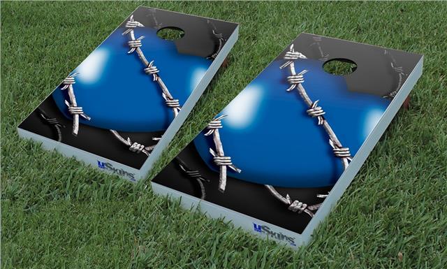 Cornhole Game Board Vinyl Skin Wrap Kit - Barbwire Heart Blue fits 24x48 game boards (GAMEBOARDS NOT INCLUDED)