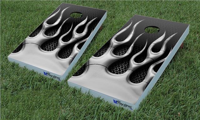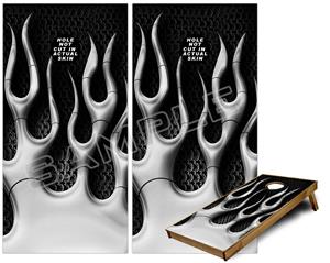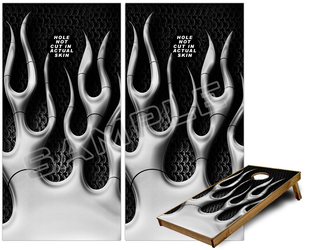 Cornhole Game Board Vinyl Skin Wrap Kit - Metal Flames Chrome fits 24x48 game boards (GAMEBOARDS NOT INCLUDED)