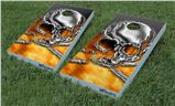 Cornhole Game Board Vinyl Skin Wrap Kit - Chrome Skull on Fire fits 24x48 game boards (GAMEBOARDS NOT INCLUDED)