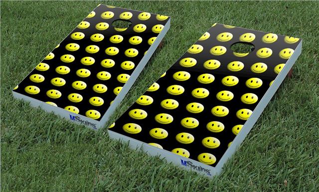 Cornhole Game Board Vinyl Skin Wrap Kit - Smileys on Black fits 24x48 game boards (GAMEBOARDS NOT INCLUDED)