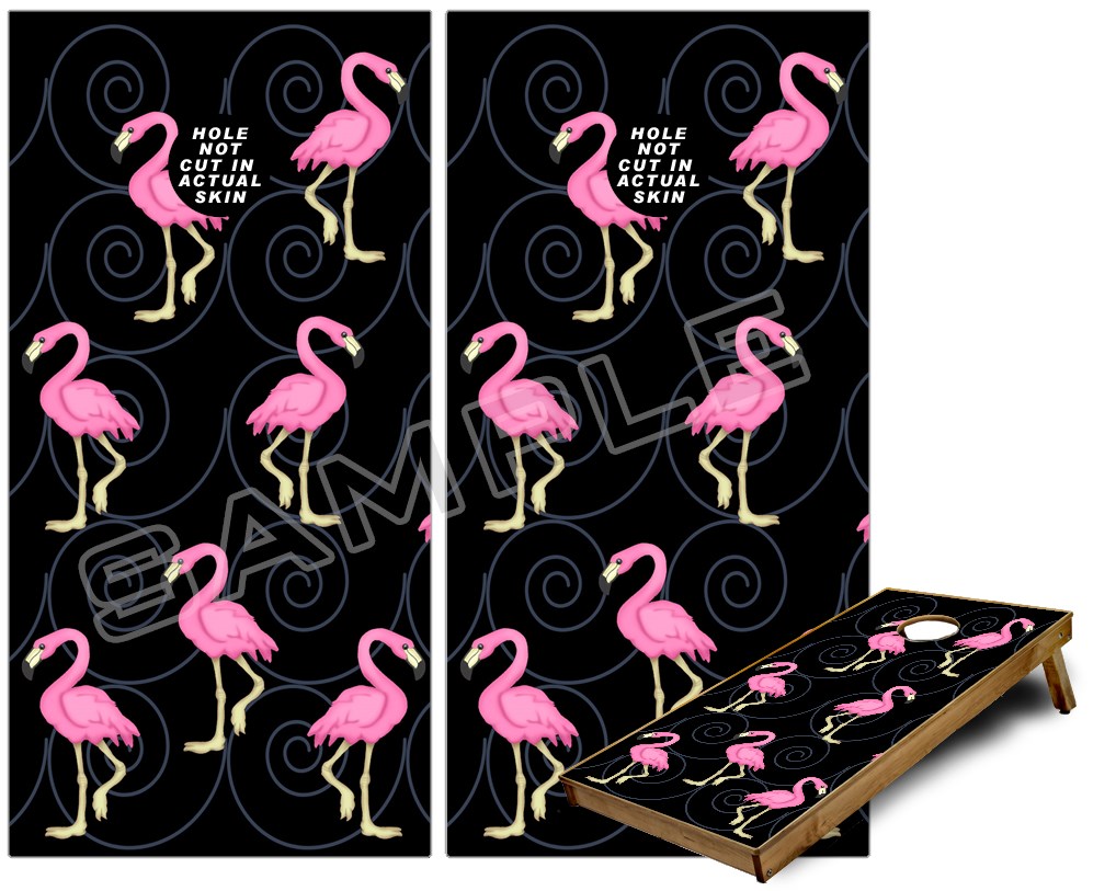 Cornhole Game Board Vinyl Skin Wrap Kit - Flamingos on Black fits 24x48 game boards (GAMEBOARDS NOT INCLUDED)