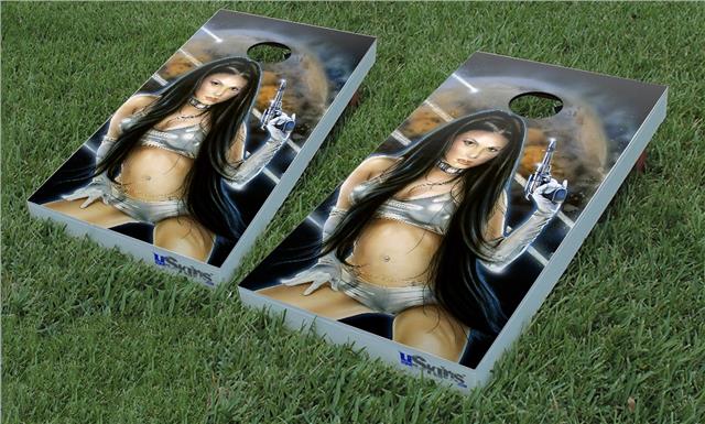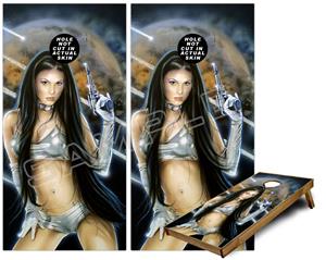 Cornhole Game Board Vinyl Skin Wrap Kit - Space Girl fits 24x48 game boards (GAMEBOARDS NOT INCLUDED)