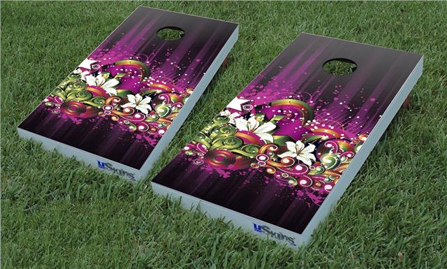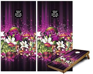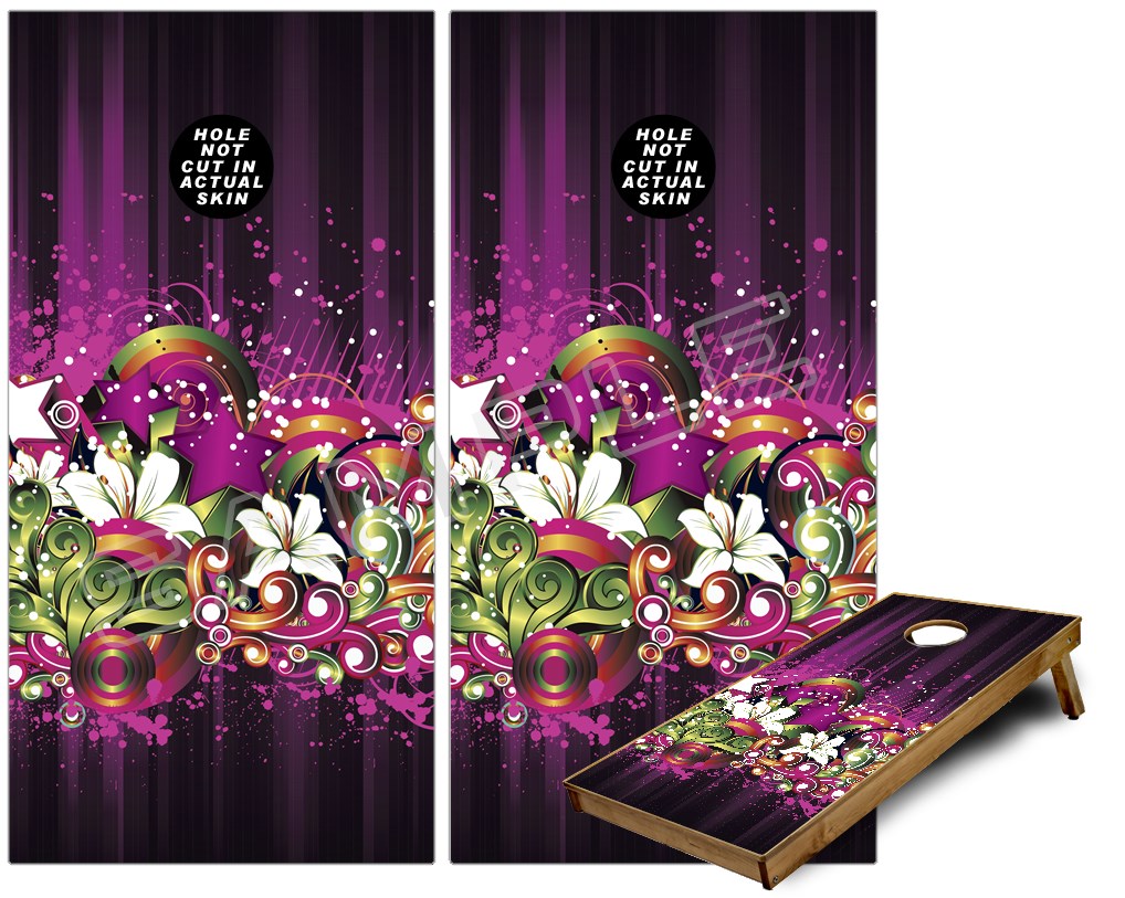 Cornhole Game Board Vinyl Skin Wrap Kit - Grungy Flower Bouquet fits 24x48 game boards (GAMEBOARDS NOT INCLUDED)
