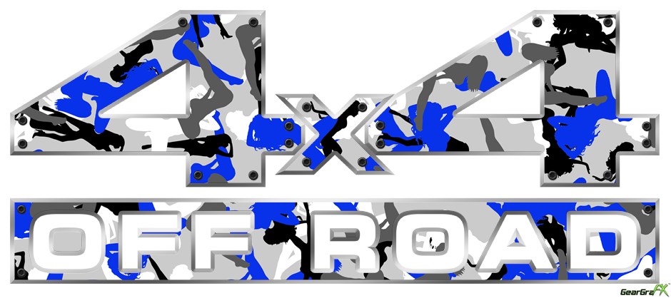 Sexy Girl Silhouette Camo Blue - 4x4 Decal Bolted 13x5.5 (2 Decal Set)
