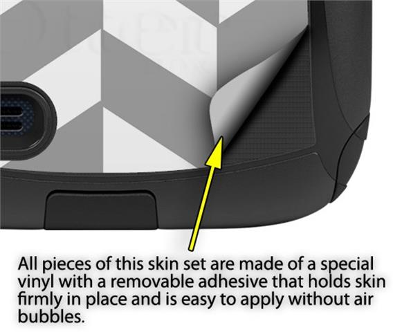 uSkins™ are self adhering vinyl decal style skins and are a great way to add a new look to your protective case. uSkins are a composite of two layers of commercial grade materials. The bottom layer is a soft, flexible vinyl with a special removable adhesive that is easily positioned, applied without air bubbles. Next we print the bottom layer with UV protected, fade resistant inks that deliver superb photo quality designs in vibrant colors. Finally we bond a professional grade laminate over the entire skin adding a glossy protective finish.