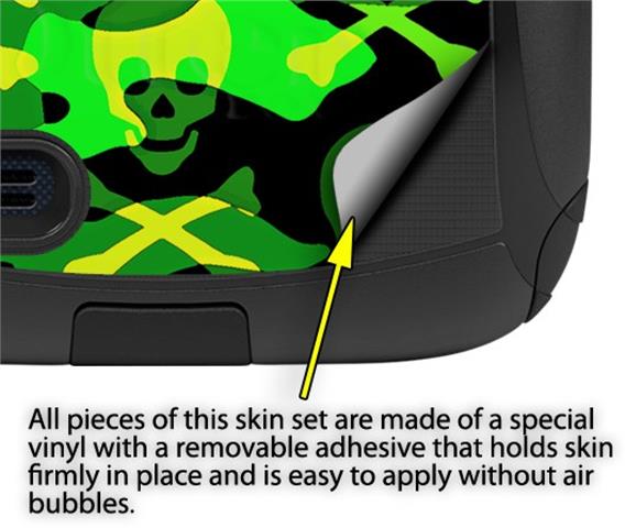 uSkins™ are self adhering vinyl decal style skins and are a great way to add a new look to your protective case. uSkins are a composite of two layers of commercial grade materials. The bottom layer is a soft, flexible vinyl with a special removable adhesive that is easily positioned, applied without air bubbles. Next we print the bottom layer with UV protected, fade resistant inks that deliver superb photo quality designs in vibrant colors. Finally we bond a professional grade laminate over the entire skin adding a glossy protective finish.