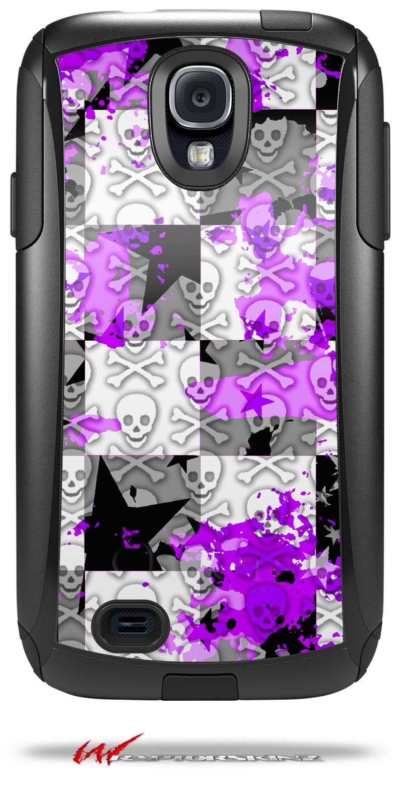 Purple Checker Skull Splatter - Decal Style Vinyl Skin fits Otterbox Commuter Case for Samsung Galaxy S4 (CASE SOLD SEPARATELY)