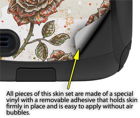 uSkins™ are self adhering vinyl decal style skins and are a great way to add a new look to your protective case. uSkins are a composite of two layers of commercial grade materials. The bottom layer is a soft, flexible vinyl with a special removable adhesive that is easily positioned, applied without air bubbles. Next we print the bottom layer with UV protected, fade resistant inks that deliver superb photo quality designs in vibrant colors. Finally we bond a professional grade laminate over the entire skin adding a glossy protective finish.