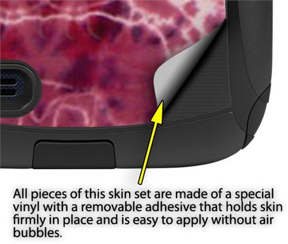 uSkins™ are self adhering vinyl decal style skins and are a great way to add a new look to your protective case. uSkins are a composite of two layers of commercial grade materials. The bottom layer is a soft, flexible vinyl with a special removable adhesive that is easily positioned, applied without air bubbles. Next we print the bottom layer with UV protected, fade resistant inks that deliver superb photo quality designs in vibrant colors. Finally we bond a professional grade laminate over the entire skin adding a glossy protective finish.