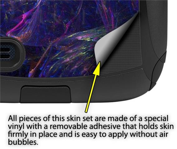 uSkins™ are self adhering vinyl decal style skins and are a great way to add a new look to your protective case. uSkins are a composite of two layers of commercial grade materials. The bottom layer is a soft, flexible vinyl with a special removable adhesive that is easily positioned, applied without air bubbles. Next we print the bottom layer with UV protected, fade resistant inks that deliver superb photo quality designs in vibrant colors. Finally we bond a professional grade laminate over the entire skin adding a glossy protective finish.
