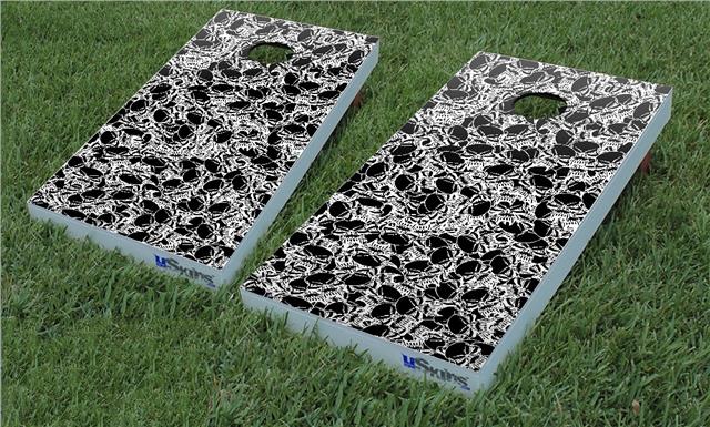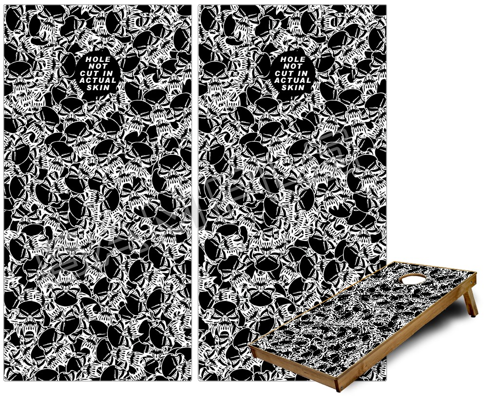 Cornhole Game Board Vinyl Skin Wrap Kit - Scattered Skulls Black fits 24x48 game boards (GAMEBOARDS NOT INCLUDED)