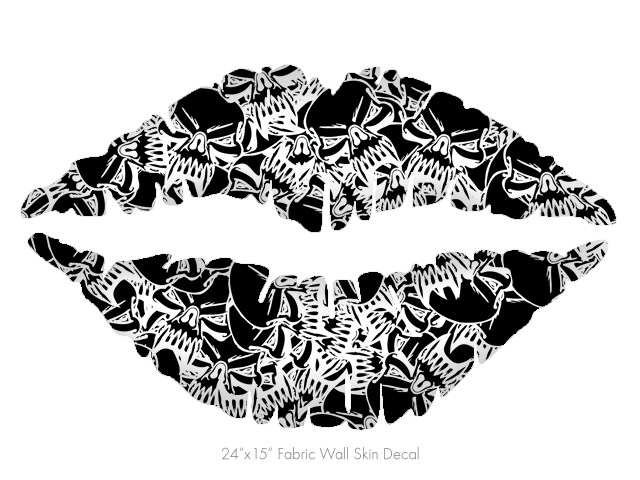Scattered Skulls Black - Kissing Lips Fabric Wall Skin Decal measures 24x15 inches