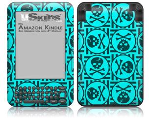 Skull Patch Pattern Blue - Decal Style Skin fits Amazon Kindle 3 Keyboard (with 6 inch display)