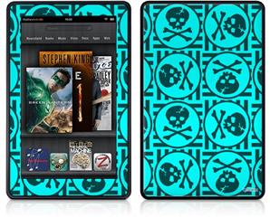 Amazon Kindle Fire (Original) Decal Style Skin - Skull Patch Pattern Blue