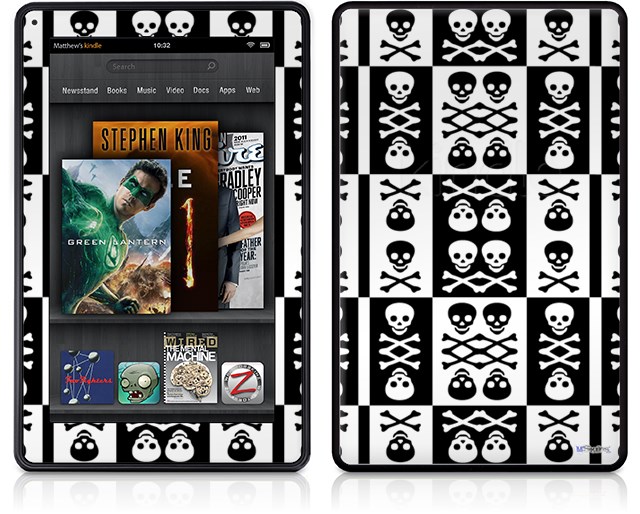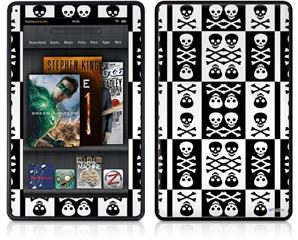 Amazon Kindle Fire (Original) Decal Style Skin - Skull And Crossbones Pattern Bw