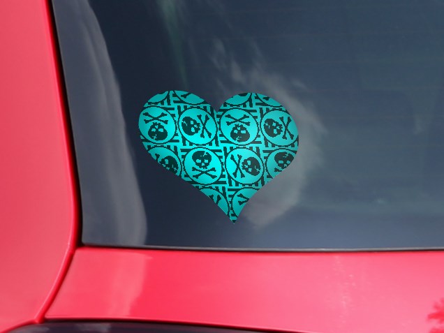 Skull Patch Pattern Blue - I Heart Love Car Window Decal 6.5 x 5.5 inches