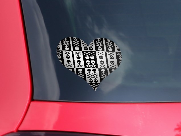 Skull And Crossbones Pattern Bw - I Heart Love Car Window Decal 6.5 x 5.5 inches