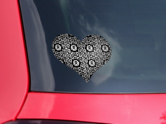 Gothic Punk Pattern - I Heart Love Car Window Decal 6.5 x 5.5 inches