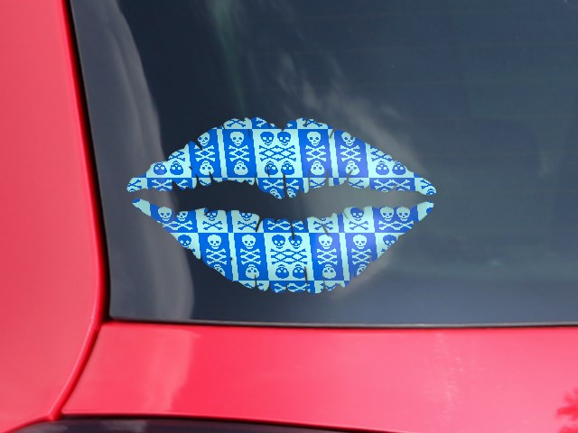 Lips Decal 9x5.5 Skull And Crossbones Pattern Blue