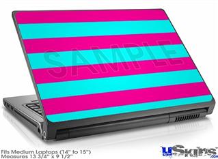Laptop Skin (Medium) - Psycho Stripes Neon Teal and Hot Pink