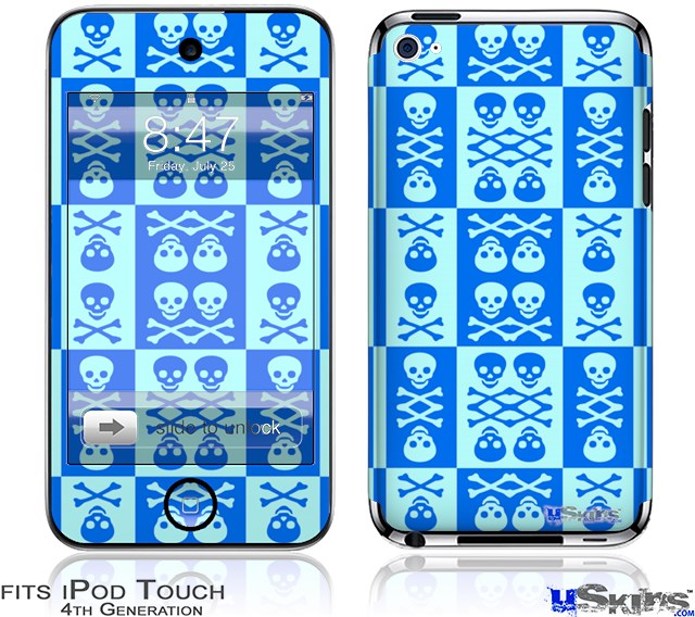 iPod Touch 4G Decal Style Vinyl Skin - Skull And Crossbones Pattern Blue