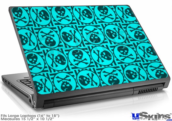 Laptop Skin (Large) - Skull Patch Pattern Blue