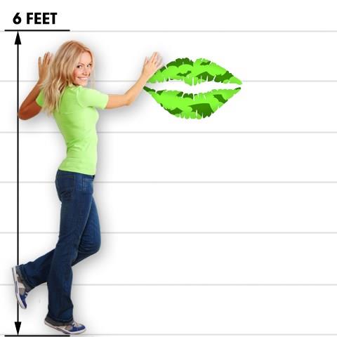 Deathrock Bats Green - Kissing Lips Fabric Wall Skin Decal measures 24x15 inches