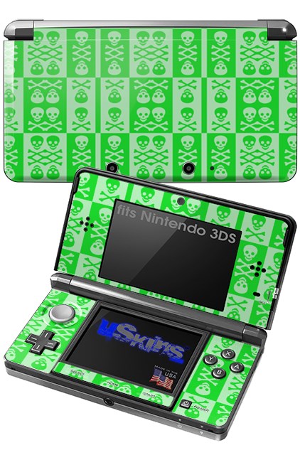 Skull And Crossbones Pattern Green - Decal Style Skin fits Nintendo 3DS (3DS SOLD SEPARATELY)