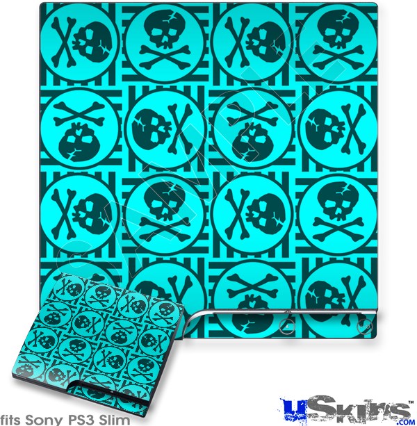 Decal Skin compatible with Sony PS3 Slim Skull Patch Pattern Blue