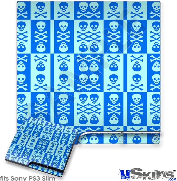 Decal Skin compatible with Sony PS3 Slim Skull And Crossbones Pattern Blue