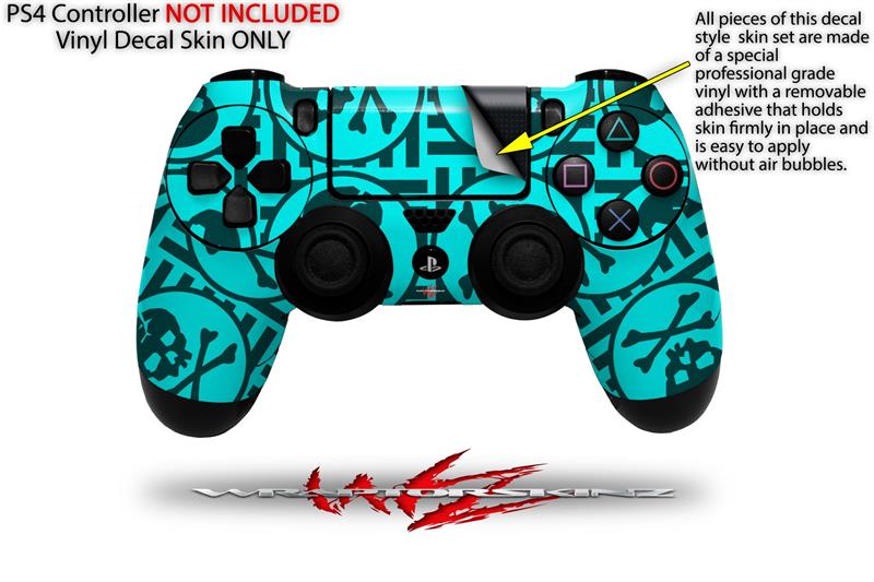 WraptorSkinz Skin compatible with Sony PS4 Dualshock Controller PlayStation 4 Original Slim and Pro Skull Patch Pattern Blue (CONTROLLER NOT INCLUDED)