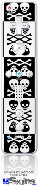 Wii Remote Controller Face ONLY Skin - Skull And Crossbones Pattern Bw