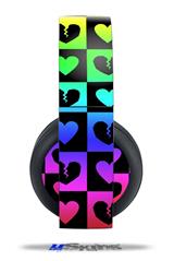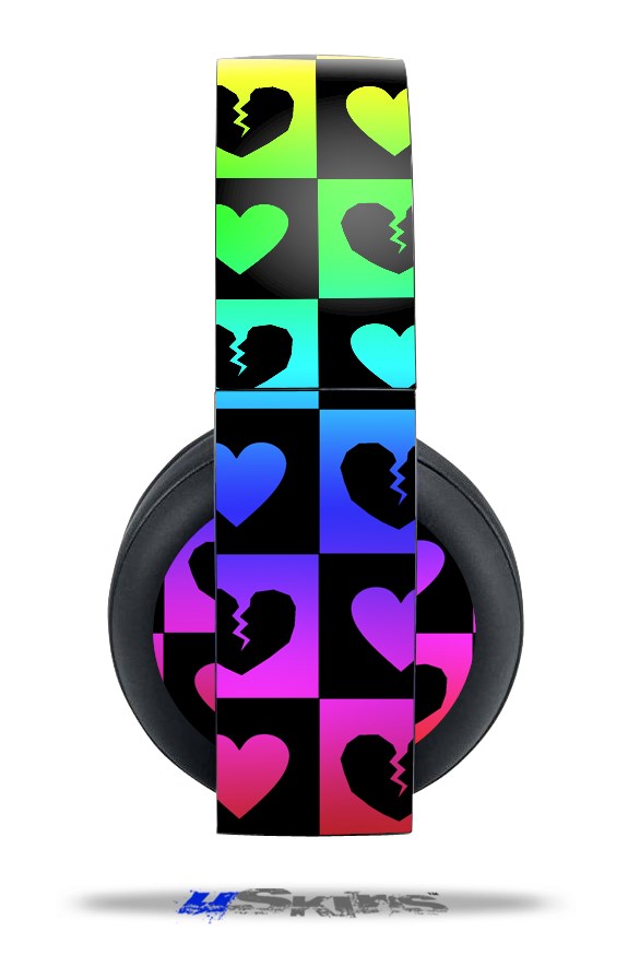 Vinyl Decal Skin Wrap compatible with Original Sony PlayStation 4 Gold Wireless Headphones Love Heart Checkers Rainbow (PS4 HEADPHONES  NOT INCLUDED)