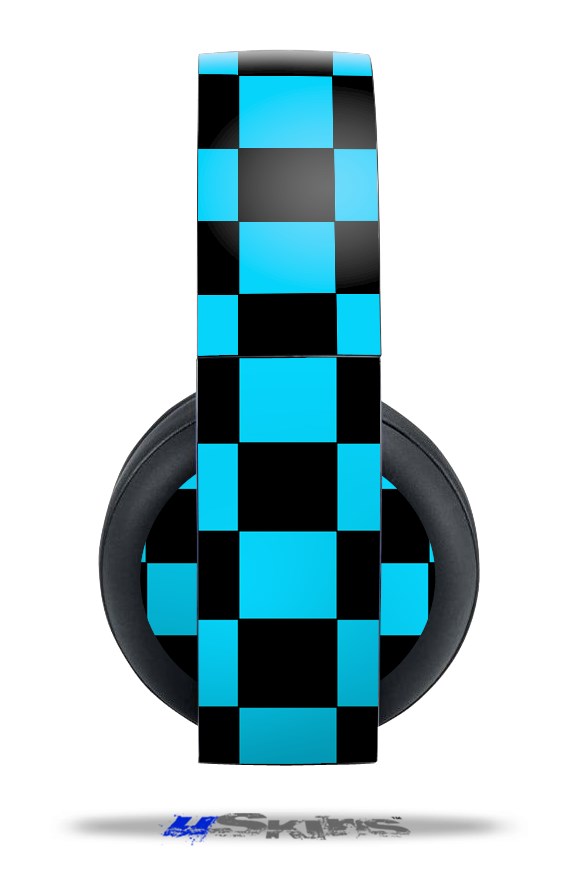 Vinyl Decal Skin Wrap compatible with Original Sony PlayStation 4 Gold Wireless Headphones Checkers Blue (PS4 HEADPHONES  NOT INCLUDED)