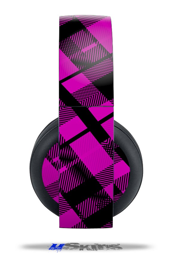 Vinyl Decal Skin Wrap compatible with Original Sony PlayStation 4 Gold Wireless Headphones Pink Plaid (PS4 HEADPHONES NOT INCLUDED)