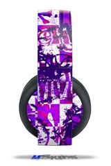 Vinyl Decal Skin Wrap compatible with Original Sony PlayStation 4 Gold Wireless Headphones Purple Checker Graffiti (PS4 HEADPHONES NOT INCLUDED)