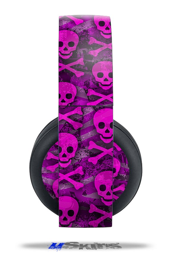 Vinyl Decal Skin Wrap compatible with Original Sony PlayStation 4 Gold Wireless Headphones Pink Skull Bones (PS4 HEADPHONES NOT INCLUDED)