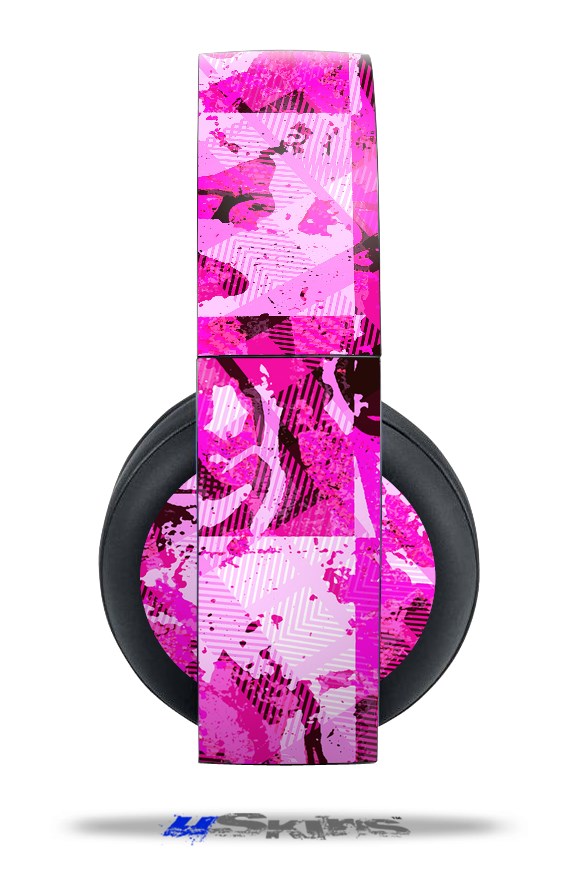 Vinyl Decal Skin Wrap compatible with Original Sony PlayStation 4 Gold Wireless Headphones Pink Plaid Graffiti (PS4 HEADPHONES NOT INCLUDED)