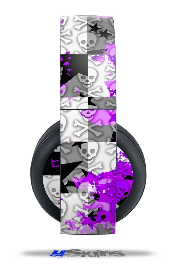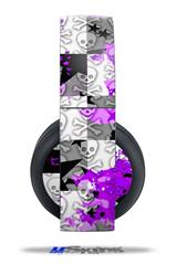 Vinyl Decal Skin Wrap compatible with Original Sony PlayStation 4 Gold Wireless Headphones Purple Checker Skull Splatter (PS4 HEADPHONES  NOT INCLUDED)