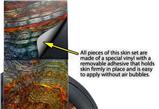 WraptorSkinz® are self adhering vinyl skins that help prevent scratches and look great doing it. Unlike bulky silicon, plastic or metal cases and faceplates, WraptorSkinz® are designed to be thin and very tough. WraptorSkinz® are a composite of two layers of commercial grade materials. The bottom layer is a soft, flexible vinyl with a special removable adhesive that is easily positioned, applied without air bubbles. Next we print the bottom layer with UV protected, fade resistant inks that deliver superb photo quality designs in vibrant colors. Finally we bond a professional grade laminate over the entire skin adding a glossy protective finish.