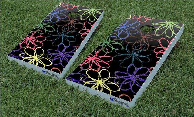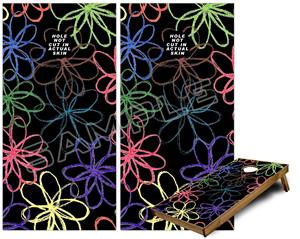 Cornhole Game Board Vinyl Skin Wrap Kit - Kearas Flowers on Black fits 24x48 game boards (GAMEBOARDS NOT INCLUDED)