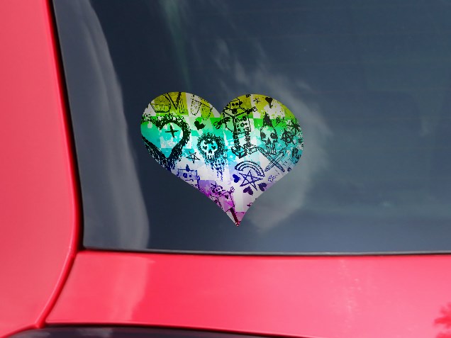 Scene Kid Sketches Rainbow - I Heart Love Car Window Decal 6.5 x 5.5 inches