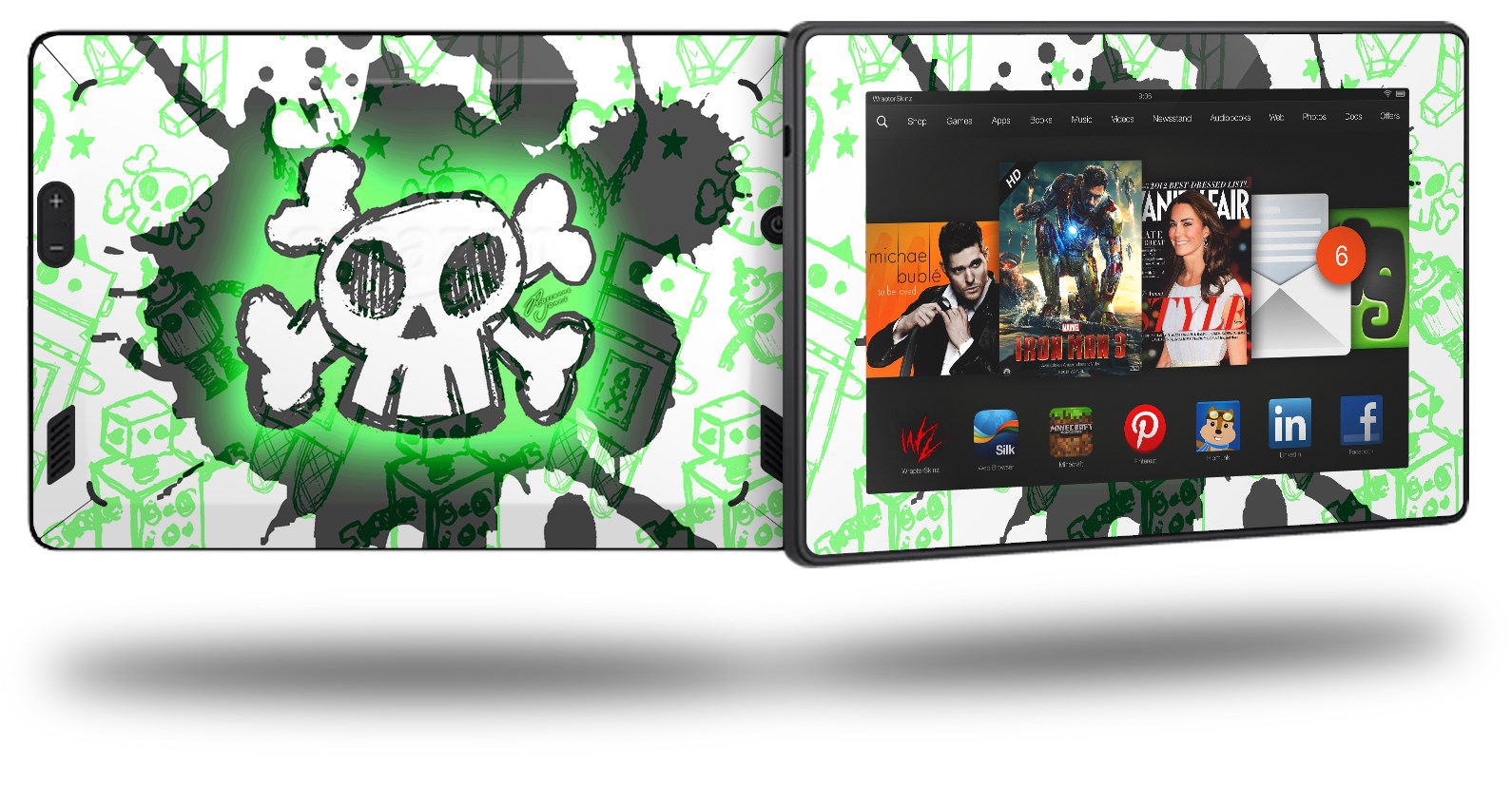 Cartoon Skull Green - Decal Style Skin fits 2013 Amazon Kindle Fire HD 7 inch