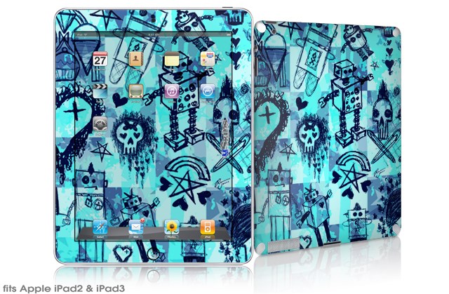 iPad Skin - Scene Kid Sketches Blue (fits iPad2 and iPad3)
