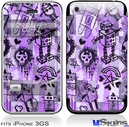 iPhone 3GS Skin - Scene Kid Sketches Purple